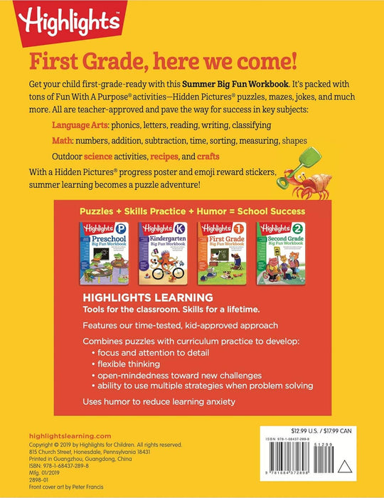 Prepare your child for first grade success with this award-winning, activity-packed summer workbook from Highlights, trusted by parents with over 450,000 series copies sold! Aligned with state standards and organized week-by-week, this workbook strikes the perfect balance between reviewing important skills and introducing new concepts, ensuring your child is ready and excited to thrive in first grade.