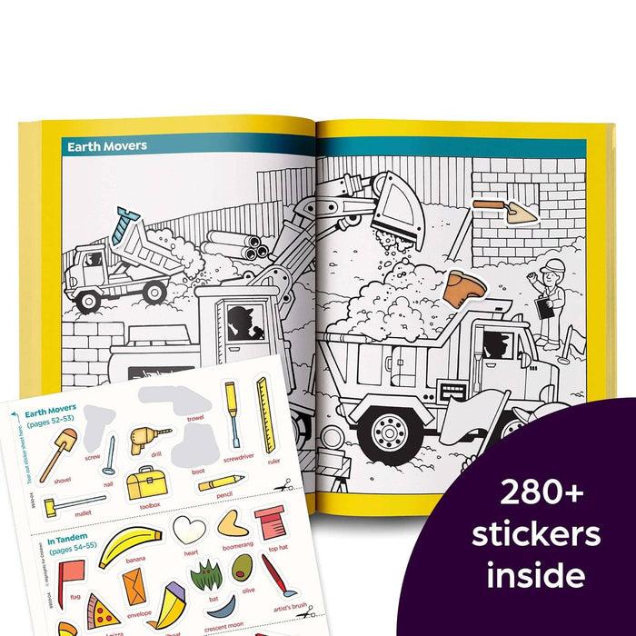 Great for vehicle-obsessed kids 3 and up, this 96-page sticker activity book will provide hours of seek-and-find fun.