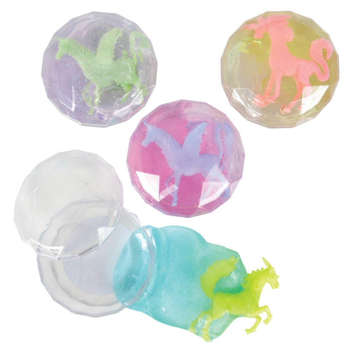 Fun to bounce and stretch! Each container of glittery putty houses a magical unicorn figure (approx. 1 1/2" in size). This Unicorn Putty slime is so much fun to play with!