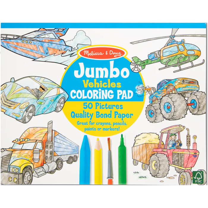 Fifty of the fastest, coolest cars and trucks are printed in outline in this oversize drawing pad. Young artists can add colors, racing numbers or even flames or "sponsors" with crayons, markers, paints or pencils! The heavy-weight white pages tear out cleanly to allow more than one child to color simultaneously and make proud display easy.