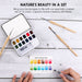 EVERYTHING YOU NEED IN ONE SET—This set includes 12 landscape-inspired colors, a high-quality water brush for blending, four watercolor paper sheets, a swatch sheet for quick color reference, and a sponge for texture and brush care. It is perfect for beginners and experienced